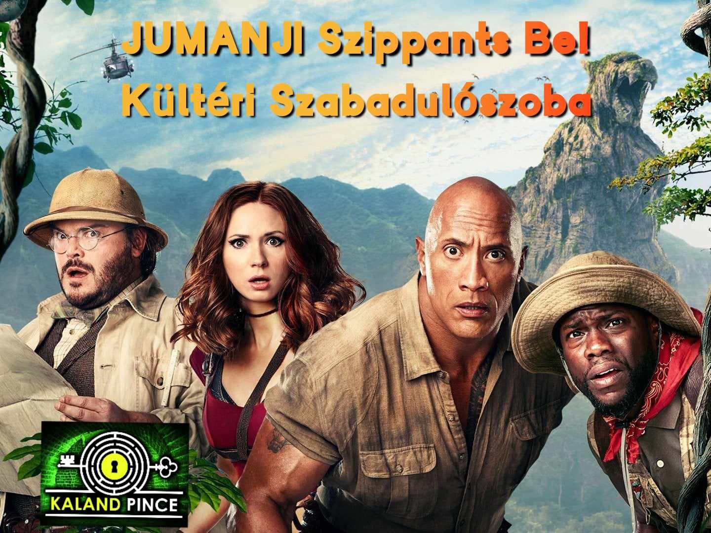 A kültéri változat hasonló a beltéri változathoz, azzal a különbséggel, hogy több játékos játszhatja egyszerre, és az idő sem akkora tényező. A játékhoz csak a kiegészítőkre van szükséged és már indulhat is a kaland. Minden egyes szabadulószoba egy-egy izgalmas történet köré épül fel, esetünkben a Jumanji film adaptációjának ötlete alapján. Cél a Jumanjiba bejutás (ehhez nem szükséges a film megtekintése vagy ismerete, e nélkül is élvezetes a kaland).